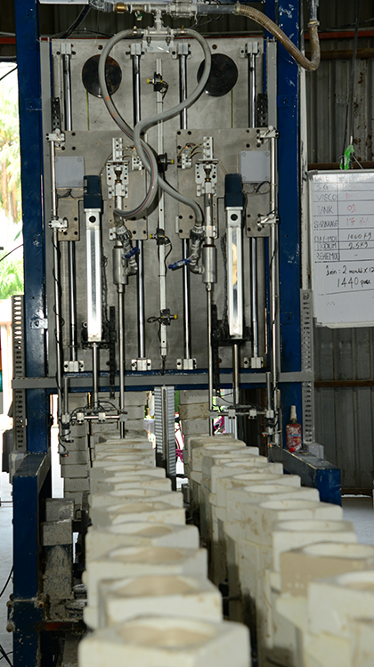 Currently we have in operation with 6 manual bench casting line with a production capacity of 2400 formers per day and A newly installed Automatic conveyor system casting line with production capacity of 2880 formers per day